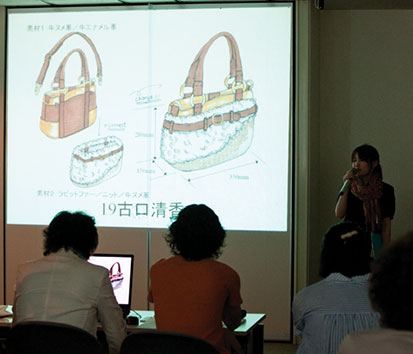 バッグブランド『SAZABY』に向けたバッグを考案。「働く女性」をターゲットにしたデザイン提案を行い、マーケットリサーチから本番さながらのプレゼンテーションまで、実際の商品開発の流れを体験しました。優秀作品は商品化され、全国の店舗で販売されました。
