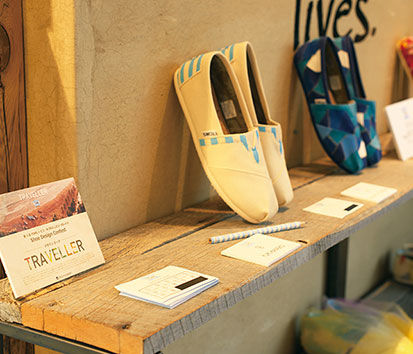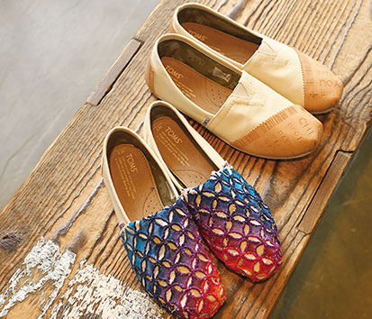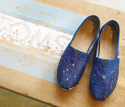 シューズコース1年生の課題として取り組んだシューズブランドTOMS主催の「Shoes Design Contest」。テーマ「TRAVELLER《旅行者》」から連想し、TOMSの人気シリーズのシューズにデザインを施します。審査通過者は、企業からご提供いただいた無地のシューズにペイントやコラージュなどで装飾し、完成品を原宿店で展示。人気投票も実施し、お客様から評価をいただける貴重な機会になりました。
