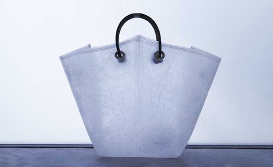 ファウンダー齊藤 明希さん在学中の「ブランドを作ろう」という課題から誕生したのが「PLASTICITY」だ。街で廃棄されたビニール傘を、バッグに加工して再び街へ送り出す。「環境に負荷をかけないモノづくりをしたい」という思いは、ずっと齊藤さんの中にあった。インターナショナルスクールや海外の大学で学ぶ中で、自然に醸成されていった意識だ。入学直後、ビニール傘を素材にしたリュックをコンペに出した。通過はしなかったが、このアイデアにシューズコースの友人が賛同。翌年、友人とともにブランドを完成させた。「初めはビニール1枚で作っていたのですが、どうしてもチープになってしまう。先生にも『百均の商品に負けてる』と酷評されて(笑)」。試行錯誤の末、複数枚のビニールをアイロンで圧着する手法にたどりついた。学園祭で目を留めてくれた企業の社長と共同開発の話が持ち上がり、現在に至る。