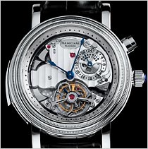 (トリック ウェストミンスター)4つのハンマーと4つのゴングでウェストミンスターのチャイムを奏でるミニッツリピーター機構が入っている。 |
