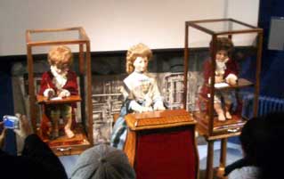 ニューシャテル駅横の坂道を下ると10〜15分で到着です。人々がここを目指すのは、ひとえにジャケ・ドローの制作した3体のオートマタ(機械式自動人形)に会いたいがためでしょう。座高70cmの書家、音楽家、画家のトリオがこの博物館の一番奥の部屋で待っています(写真1)。