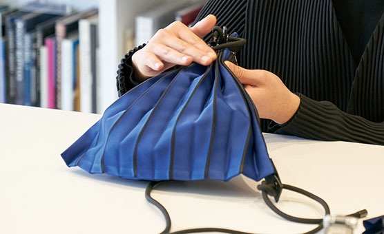 雑貨企画室 企画職安部田 蔵馬さん安部田さんがイッセイ ミヤケを志望したのは、「今までにないものを、人々の快適な日常のために」という会社理念に共感したからだ。「ありきたりのバッグは作りたくない」という姿勢は学生時代から一貫している。「既成の価値観にとらわれず、誰も見たことのない素敵なものを生み出す。ワクワクするものづくりができています」。基本的に素材も一から開発する。異素材を組み合わせたり、新たな加工を考えたり。デザインの細部にもこだわり、何回もサンプルを作り直すこともあるという。その試行錯誤は、安部田さんにとって苦しくも楽しい時間だ。「新しく出会う素材には、それぞれ“なりたい形”があると思うんです。そこにたどり着けるとすごくうれしい」