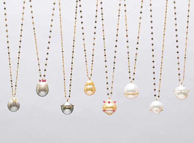 真珠が纏うオーロラの光を活かしてデザインした、日常のファッションに着けるパールジュエリーを展開。使用するパールはデザイナー自らが目利きをし、仕入れを行っている。