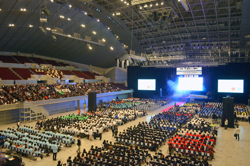 技能五輪全国大会は、国内の青年技術者(原則23歳以下)が42種の技術競技で日本一を競い合う、唯一の全国レベルの技能競技大会です。1963年より毎年開催されており、偶数年度の大会は、翌年に開催される技能五輪国際大会(隔年開催)の選手選考を兼ねています。プロも参加する「職人のオリンピック」と言われ、本校では「貴金属装身具部門」と「時計修理部門」に選抜学生が参加しています。2021年の東京大会では「貴金属装身具部門」にて金・銀・銅メダルすべてを本校学生が独占するという快挙を成し遂げました。